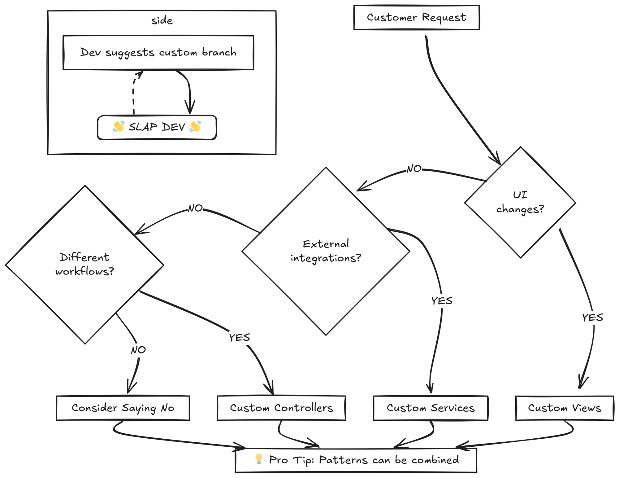 The goal isn't to eliminate customization - it's to make it sustainable. When the next customer asks for "just a small change," you'll have the architecture to handle it properly from day one.
